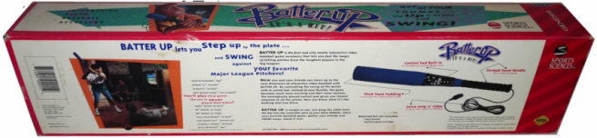 Taí um controle interessante, e que funcionava muito bem. Nem precisa falar que era pra ser usado com jogos de beiseball né? Com sensor de movimento, botões, direcional e um cabo enorme, dava pra jogar de boa. O ruim era quando o moleque empolgava e alguem aparecia na frente do garoto bem na hora de rebater a bola... Ah sim, a empunhadura era muito boa tambem, mas por não ter nenhuma alça de segurança que prendesse o taco no braço do jogador, o jogador poderia arremessar o taco à léguas de distância ou em direção à TV.