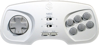 NEC PC-FX Controller – O controle do PC-FX possui um direcional com 8 direções, botão Select e Run como no PC-Engine, e seis botões de ação como o controle do PC-Engine Duo-RX e mais dois seletores que servem para mudar as funções dos botões para alguns jogos.