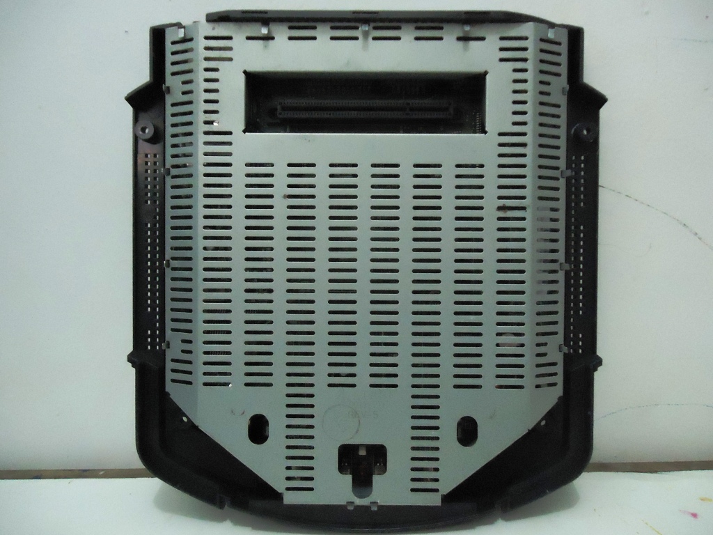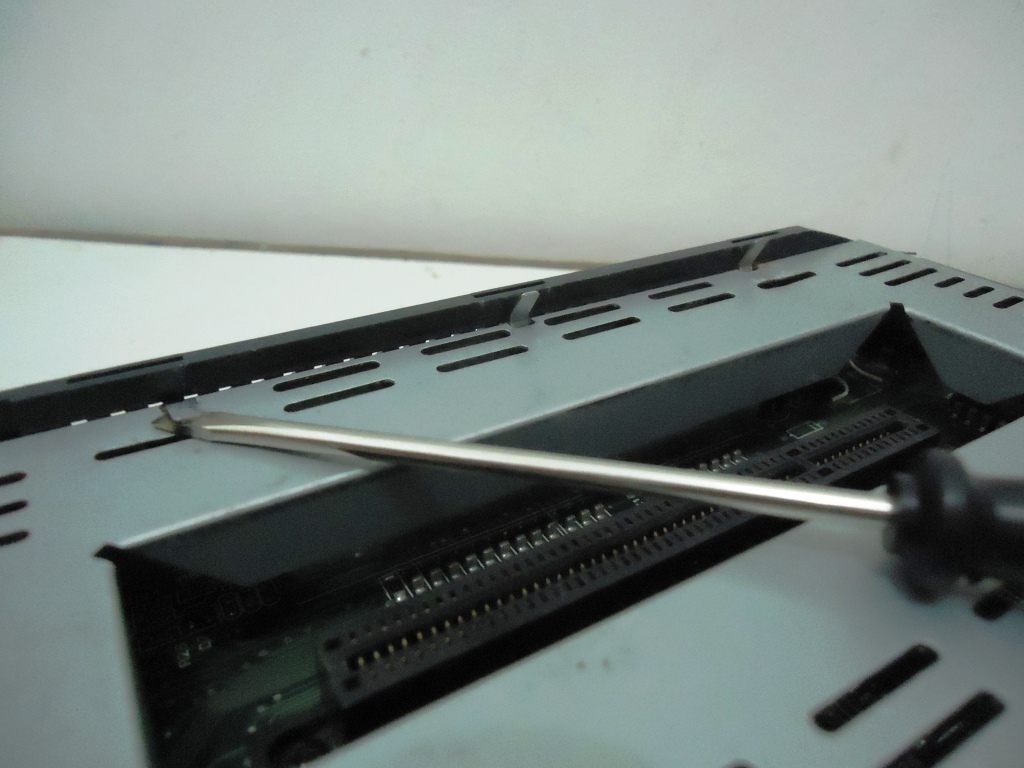 Abrindo o console, se dá logo de cara com duas chpas metálicas que literalmente prende a placa mãe dentro delas. As chapas são frisadas, permitindo o arrefecimento e dissipação de calor que o hardware possa produzir, além de proteger o hardware de interferências eletromagnéticas externas.