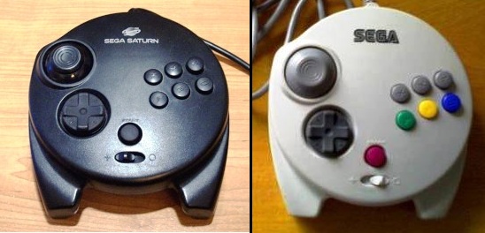 O controle 3D do Saturn. O pretinho é americano, o branco japa