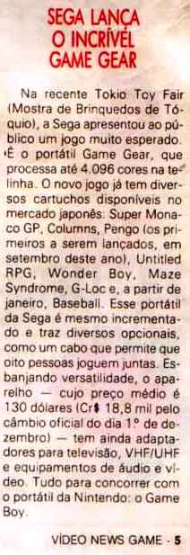 Ah sim, o Game Gear foi lançado logo depois aqui no Brasil