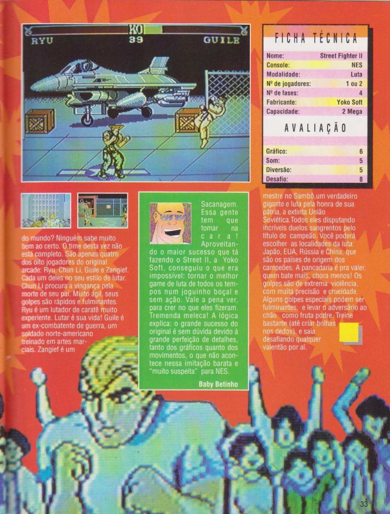Baby Betinho lascou o pau nesse jogo, mas tambem pudera, como ele era acostumado a beber só leite, ficou puto quando viu que esse Street Fighter era coisa de homem mesmo, que não precisa de gráficos bonitinhos ou personagens perfeitamentes desenhados com mil quadros de animação.