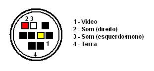 O fio do sinal de video deverá ficar no ponto de nº 1 (no quadrado em amarelo) e o fio do terra do video no ponto de nº 4, que é aquele anel metalico que rodeia o conector. O conector do MD3, ao contrário do MD 1/2, possui saida para som estereo. Só conectar o fio do sinal de audio do cabo nos pontos 2 e 3, lembrando que o ponto 2 é para o cabo de ponta vermelha e o ponto 3 é para o cabo de ponta branca.