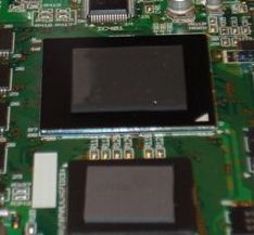 | Plaquinha de entrada dos controles. A peça em azul é a bateria, que é responsável por alimentar a BIOS e salvar as configurações do Dream. |