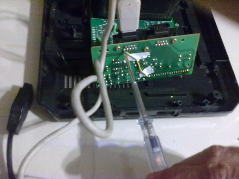 Após testar os controles Aqua Pad, vi que um tinha problema no circuito (deixei pra mexer nele outro dia). O outro controle precisava de transplante de peças pláticas do primeiro controle irmão e de 3 pingos de solda no circuito, mas ainda assim não funcionava o direcional "pra cima". Tentei de tudo pra tentar fazê-lo funcionar, em vão. Resolvi então testar ele no conector do controle 2.