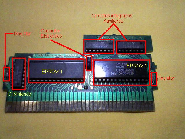 Componentes típicos de um cartucho do NES