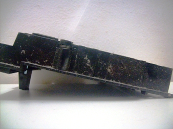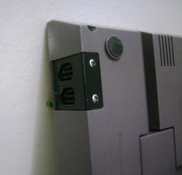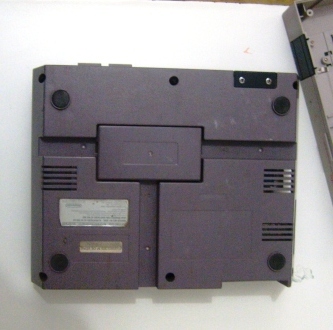 Bem, com o console já aberto e parcialmente, ainda faltava retirar as peças que compõem o painel do console. Essas peças estão parafusadas e encaixadas de modo peculiar, pois as portas do controle e os botões Power e Reset estão conectados na placa mãe através de plugs e não soldados como ocorre geralmente em outros consoles. Para retirar as portas de entrada dos controles, é preciso desparafusar aquele espelho preto que fica na frente deles. Os parafusos ficam na parte de baixo da carcaça, por fora, conforme mostra as fotos abaixo: