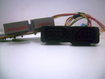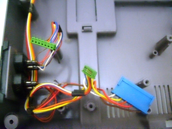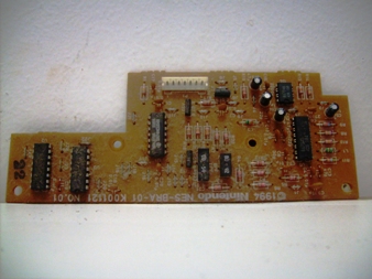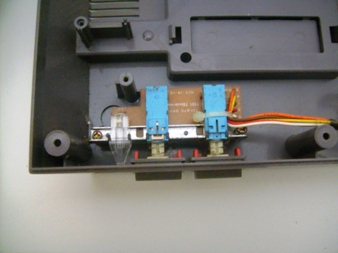 Se for desmontar o NES, lembre-se de desconectar e desparafusar absolutamente tudo! Na foto à esquerda, plaquinha dos botões e led do painel, à direita, os conectores das portas dos controles e da plaquinha do painel.