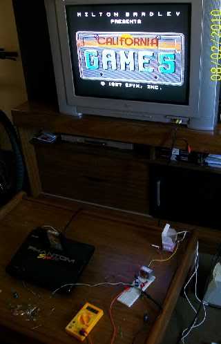 Fiquei muito contente mesmo, parecia o resultado de um vestibular!!!! Me senti poderoso!! Hehe. Eu poderia controlar a natureza!! haha! Claro que eu não podia deixar de lado o jogo que me fez comprar esse Phantom... Era inacreditável rever essa imagem, gerada por esse console. Aliás, tive a impressão de que a imagem é mais nítida e mais colorida do que no Turbo Game, que por sua vez é mais colorida que no próprio Nes Playtronic. O som do Phantom também é menos ardido do que no VG 9000T.