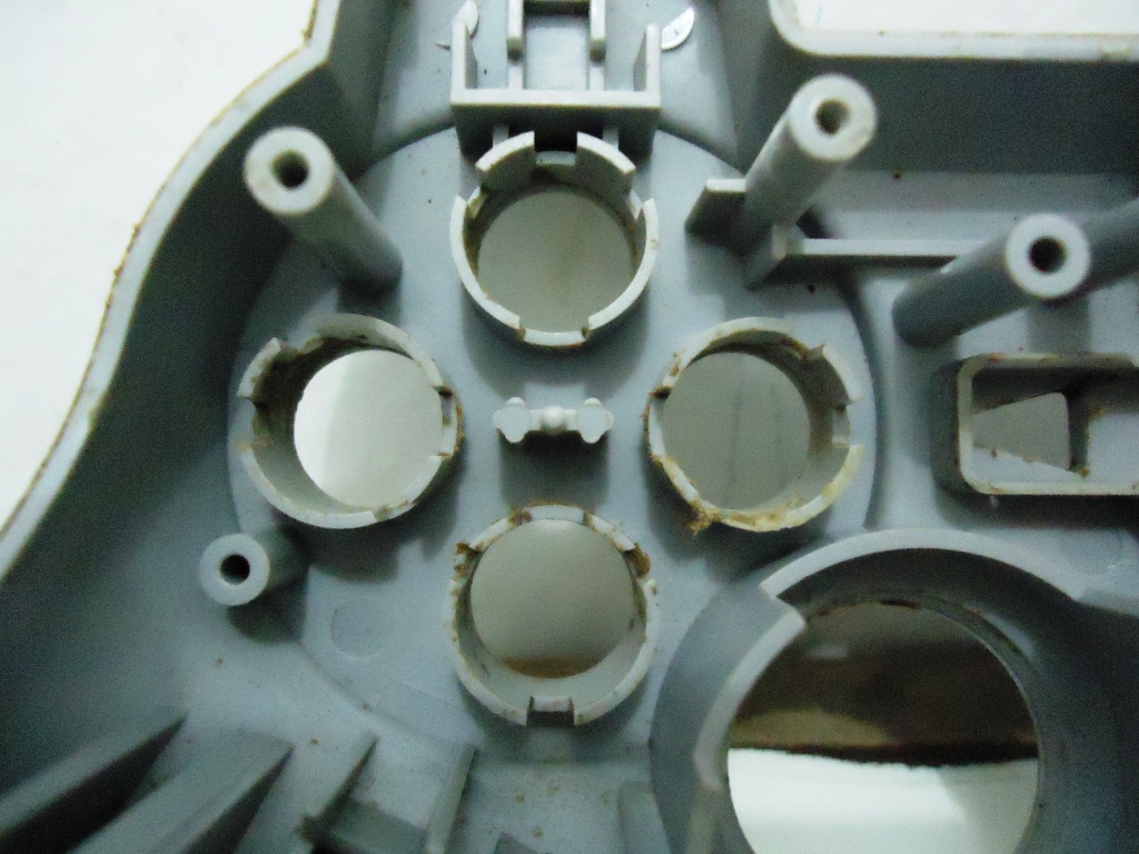 Sujinho e bem grudento. Os direcionais analógicos estavam com aquelas borrachinhas de cima em péssimo estado, muito além de qualquer reparo. Só haveria duas soluções possiveis: trocar os analógicos por outros em melhor estado, ou tirar aquela borrachina e deixa-lo sem.
