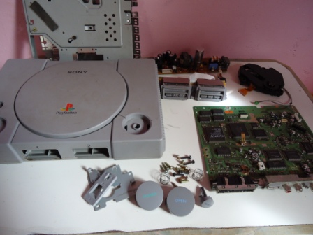 Agora a parte ruim da historia... como havia dito, algum tosco resolveu estragar de vez com a fonte desse video game, e isso fez com que o resto do video game fosse pro saco tambem. A fonte, a placa mãe e o leitor estão estragados, e só há conserto viavel para a fonte. Mesmo assim, possivelmente consertar essa fonte saíra mais caro que comprar outro PSX lá na feira, então para este caso, resolvi apenas aproveitar as peças de um outro PSX para montar dentro da carcaça deste (que está bem mais bonita).