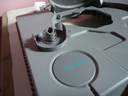 Com as partes plasticas todas limpas, chega a remontagem. Ha que se notar que os botões Power e Open possuem cada, uma mola embaixo deles que serve justamente para mantê-los sempre erguidos e para fazer aquele movimento de vai e vem de todo botão. Portanto, a primeira coisa a se fazer é justamente colocar essa mola antes de encaixar esses botões de volta no console.