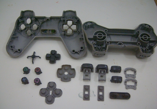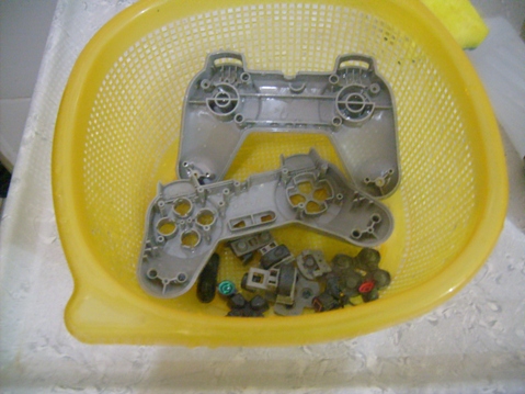 Bem... se você chegou até aqui, verá que apesar de pequeno, ha uma infinidade de peças que compoem esse joystick. Claro que a maior cautela nesse trabalho todo é o cuidado em manter segura e bem a vista todas as peças para que nenhuma se perca. Agora, separe as partes plásticas, os botões e as borrachas, elas deverão ser lavadas para voltarem a ter a aparência devida.