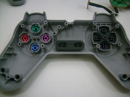 Depois de limpar todas essas peças, seque-as bem e deixe de lado por enquanto. Agora é a vez da placa do controle receber uma limpeza. Normalmente, depois de um bom tempo de uso, aparecem umas manchas brancas entre os contatos e trilhas da placa do controle. Essas manchas podem ser facilmente removidas utilizando alcóol. As borrachas dos botões tambem costumam soltar um pouco de sujeira em cima da placa, sendo esta a principal causa de falha do funcionamento dos botões. Para resolver esse tipo de problema, basta utilizar um pano limpo umedecido em alcool para remover o excesso de sujeira de cima dos contatos onde os botões ficam. Para limpar o cabo e o conector do controle o procedimento é o mesmo adotado na limpeza do resto, pegue a esponja, limpe o cabo e tambem o conector, enchague depois. Não se preocupe com água acumulada dentro do conector, basta que depois você seque-o bem, sendo que para retirar a água que fica dentro do conector, basta sacudi-lo batendo em uma toalha dobrada, você vai ver que toda a água dentro dele irá sair, e se ainda assim estiver com duvida se ficou algo lá dentro, ponha o cabo pra secar perto do sol, mas à sombra, que qualquer gota de água vai se evaporar de lá rapidinho.