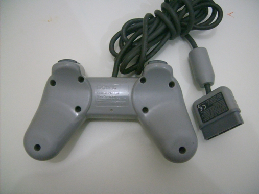 Peguei o mais feinho e judiado dos controles para fazer esse artigo. O coitado estava encardido na parte de cima, e debaixo dele encontrei arranhões nas partes de apoio da mão, e bastante sujeira acumulada nas inscrições. O conector do cabo estava muito arranhado e sujo tambem, o cabo então nem se fala... sujava a mão só de pegar: