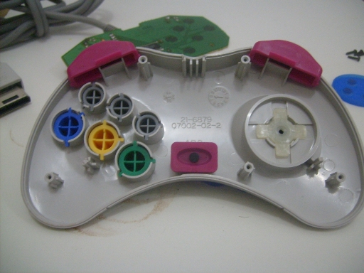 O controle ficou muito branquinho depois de tudo. Os arranhões ficaram imperceptiveis, afinal, o que faz o arrnhão aparecer é a sujeira que fica nele. O conector ficou novo, sem ferrugem, sem sujeira, e branco novamente. Os boões... perfeitos! Parecem novos! O direcional ficou sem sinal algum de poeira, o cabo tá limpo que dá gosto. A gosma verde que estava na lateral do controle sumiu. Parecia que tinha acabado de desembalar o bichinho, tava perfeito! Agora, o teste...